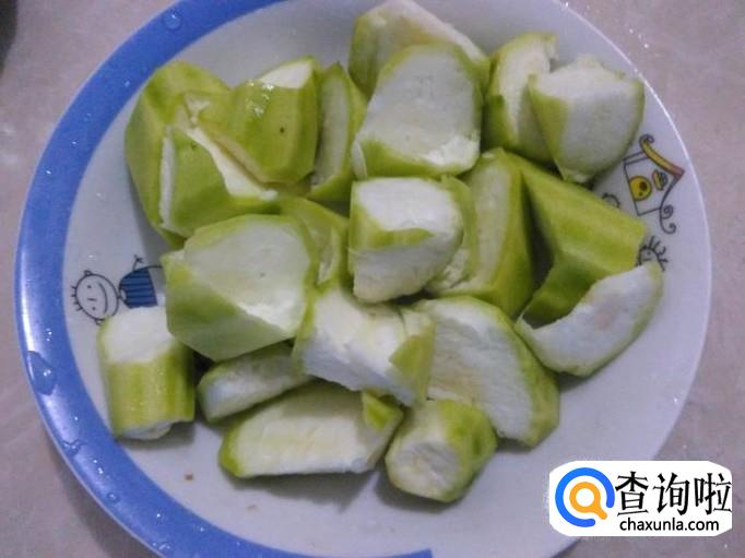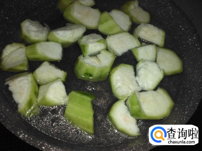 丝瓜切成棱角型。