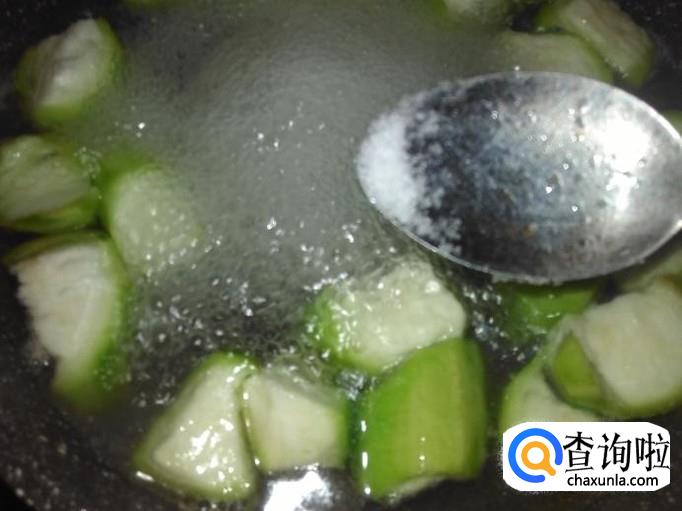 锅里装适量的水煮沸,放丝瓜进去。