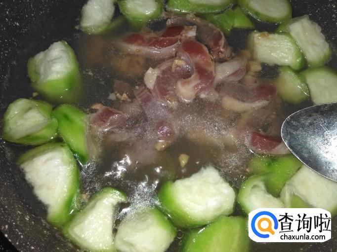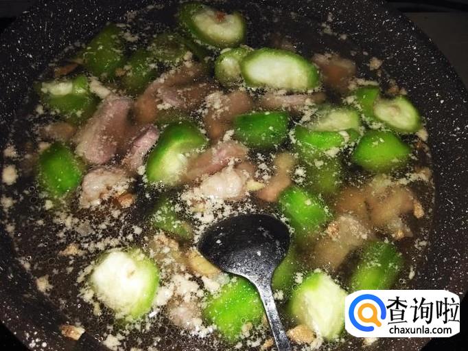 煮2分钟左右,下几粒味精翻炒均匀,熄火,非常清甜美味的丝瓜肉丝汤就做好了。