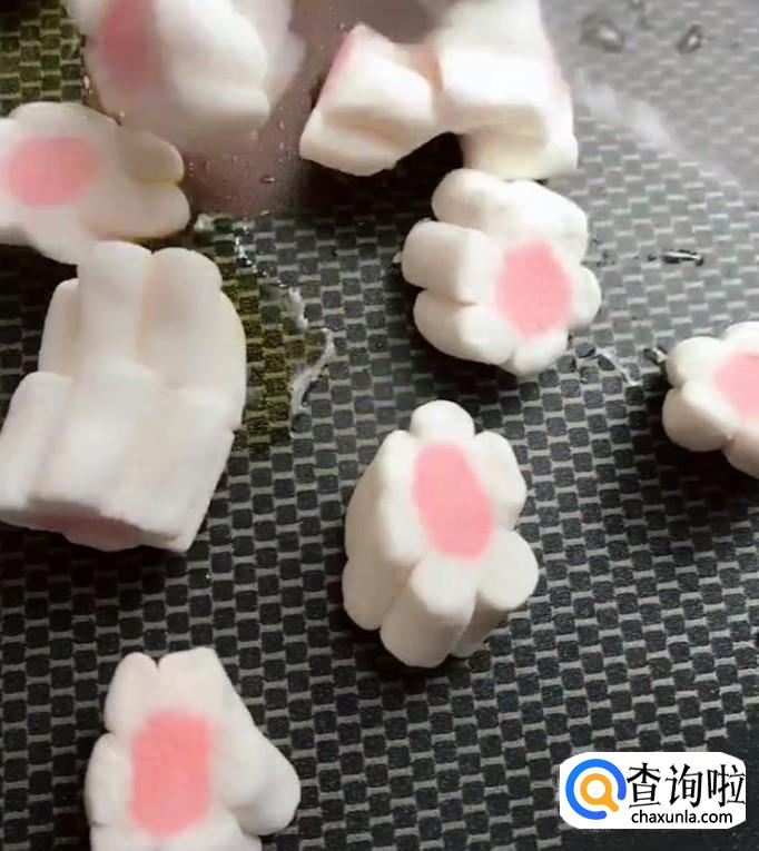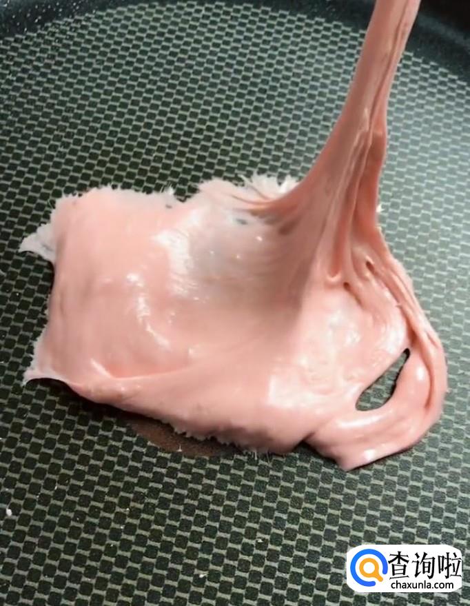 然后我们再将准备好的80g棉花糖放入锅中,继续开小火,用铲子不停的翻拌,炒至完全融化拉丝关火