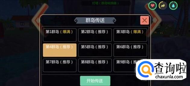 展开切换群岛选项后会出现所有的群岛以及自己所处岛屿的位置,选择自己想要去的岛屿点击传送即可。