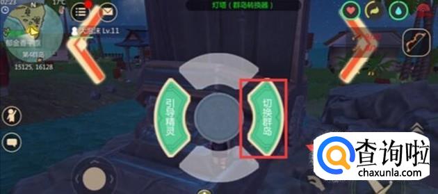 走到灯塔附近后游戏操作页面右下方会出现一个拾取的标记,点击之后选择切换岛屿的选项就可以开始换岛了。