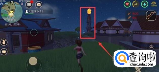 传送之后自己就会处在选择传送岛屿的灯塔处,并能通过左上角的小地图查看自己所处位置。