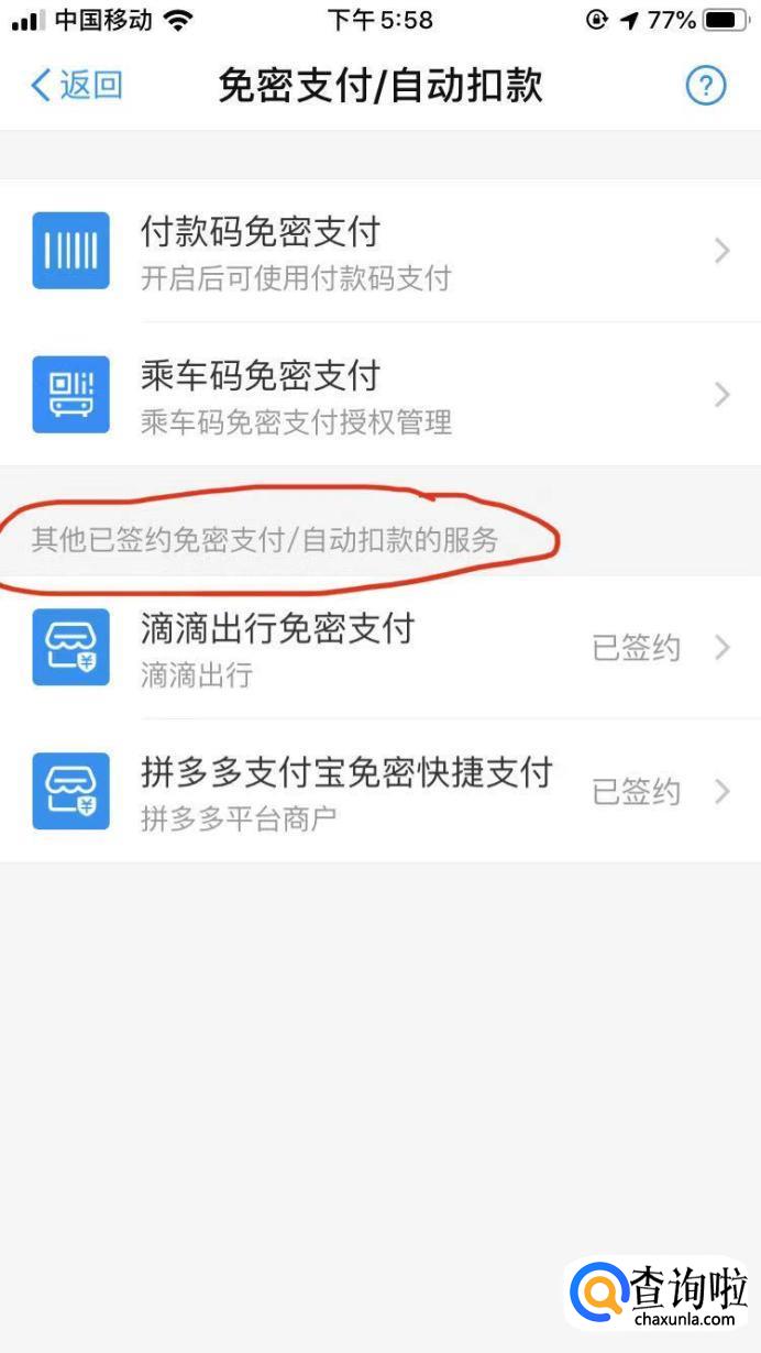 可以看到已签约免密支付/自动扣款的服务,只要点击进去选择取消就可以了。