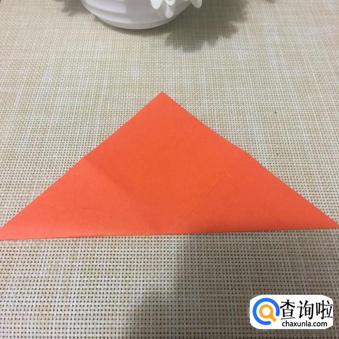 首先将正方形折纸沿对角线对折,然后沿对角线再次对折,如下图所示。