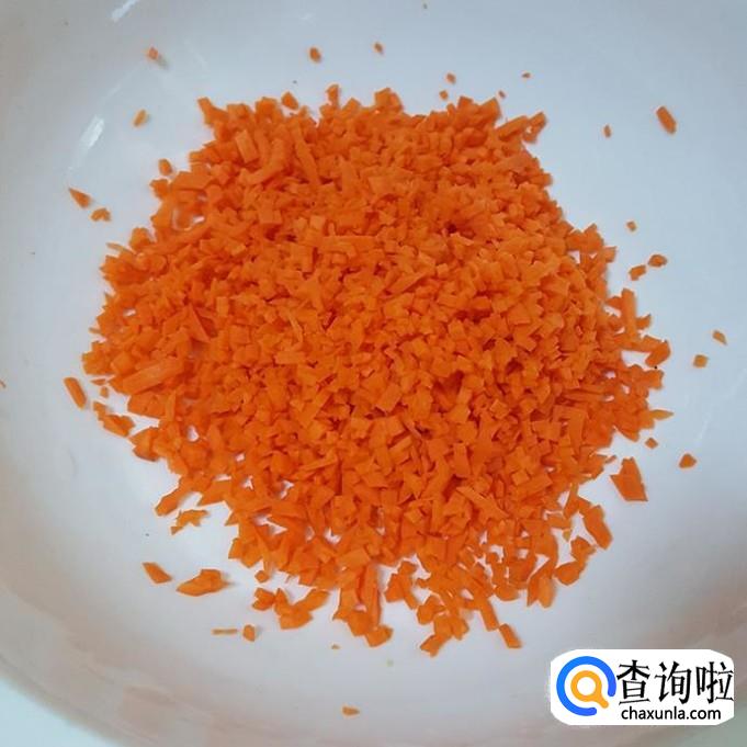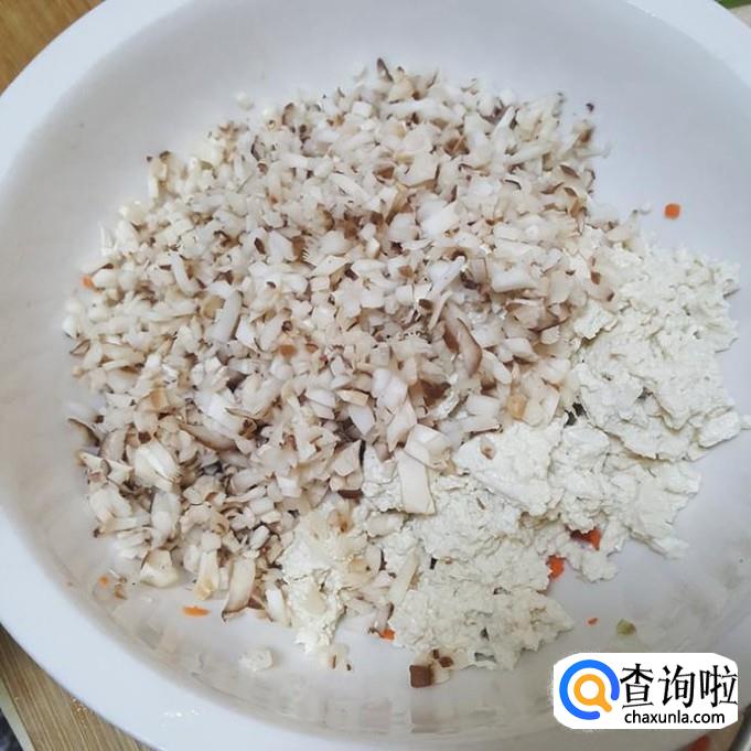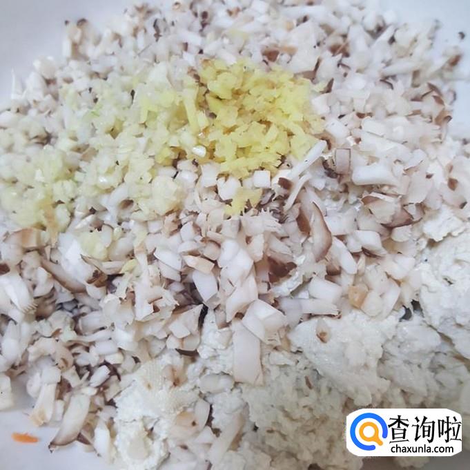 萝卜切丁,肉切末,香菇切丁,姜蒜切末