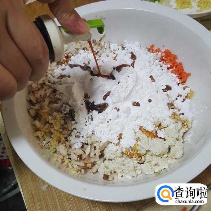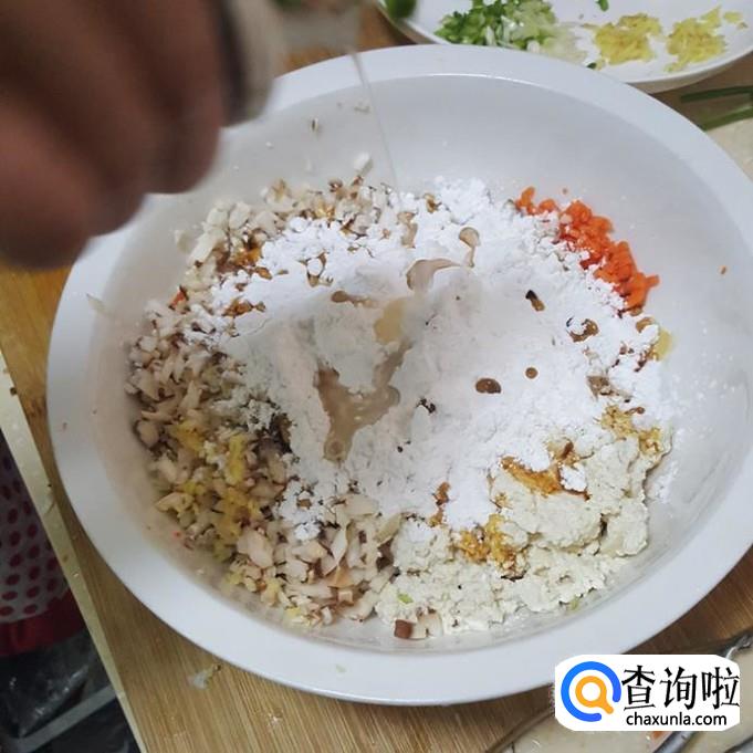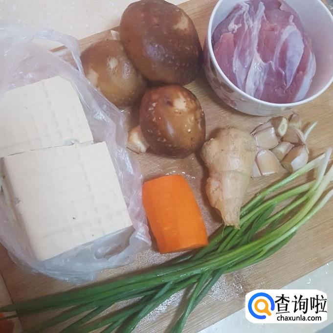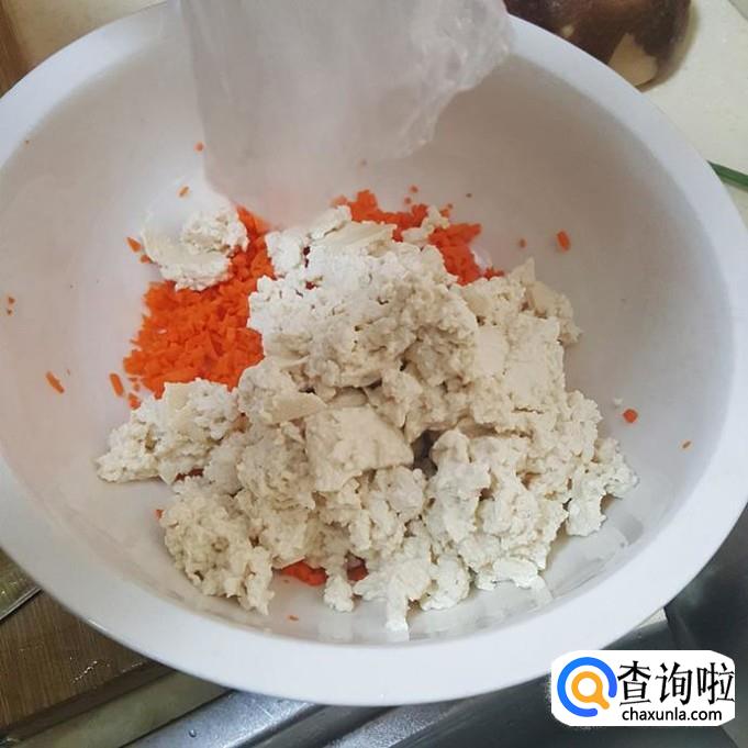 豆腐,猪肉,香菇,红萝卜,面粉,姜蒜,盐,生抽,料酒,蚝油