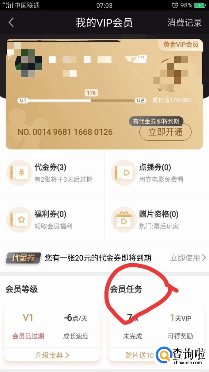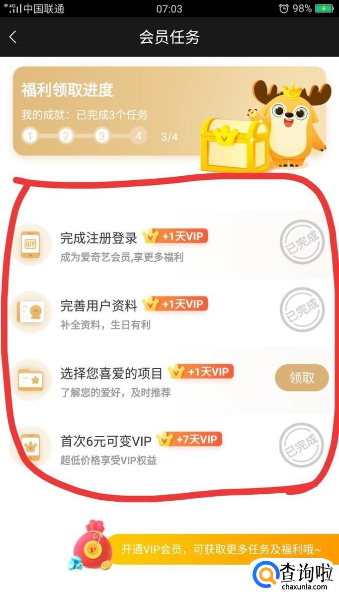 进入“会员任务”页面之后,进行并完成任务,这样你就可以领取免费的爱奇艺会员了