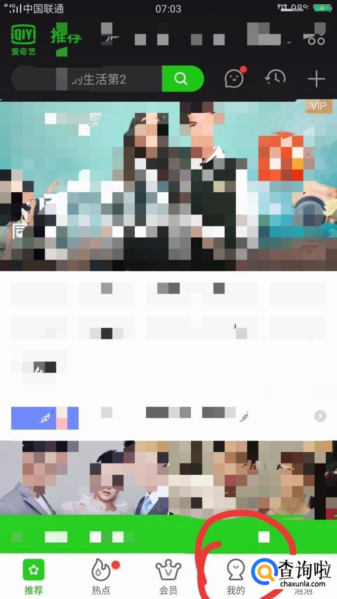 首先点击进入爱奇艺APP,登录你的账号,在首页正下方找到“我的”选项,并点击进入