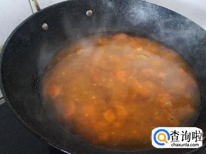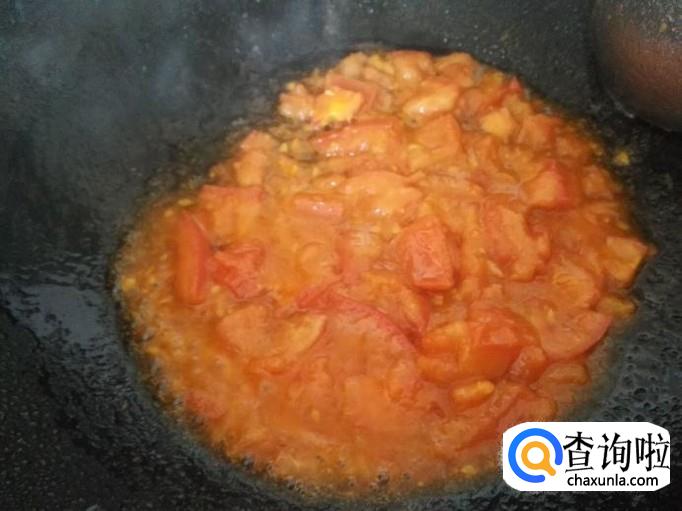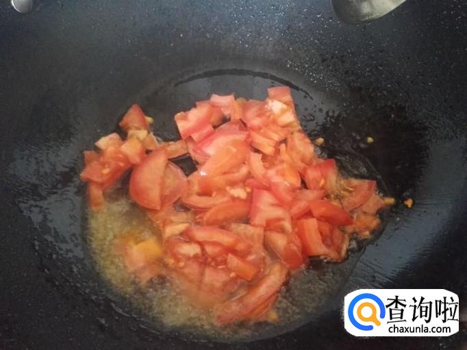 接着我们可以往锅中加入适量食用油,待油烧热,倒入我们切好的西红柿丁翻炒,炒出汁。