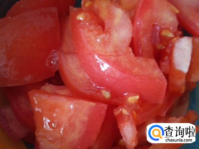 然后把清洗好的西红柿切成丁,葱切成条状备用。