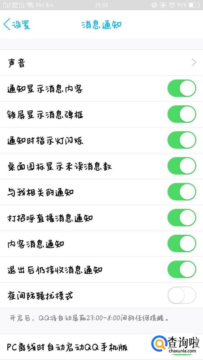 进入消息通知过后,想要QQ退出后仍接收消息通知,选择打开“退出后仍接收消息通知”即可。