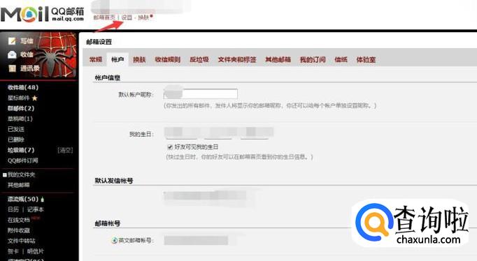 登录你的电子邮箱,点击“设置”,并选择“账户”。