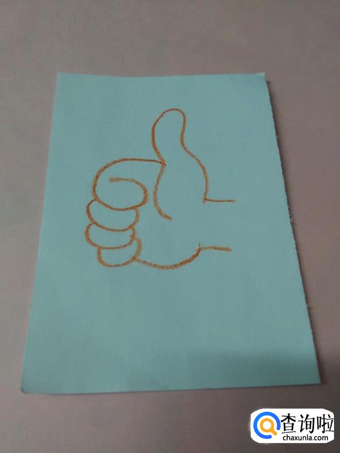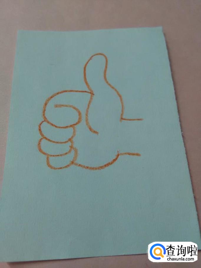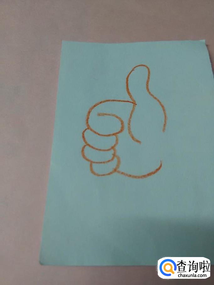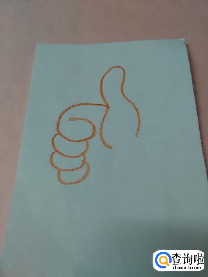 在大拇指的左边,画一个6,表示握紧的食指。