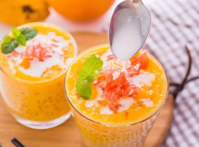 杨枝甘露的主要食材是西柚,芒果和西米。是一种营养丰富的港式甜品。