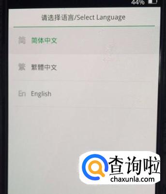 在关掉手机之后,长按右侧开关机件+左侧音量下键,打开一个界面,选择简体中文,如图所示。