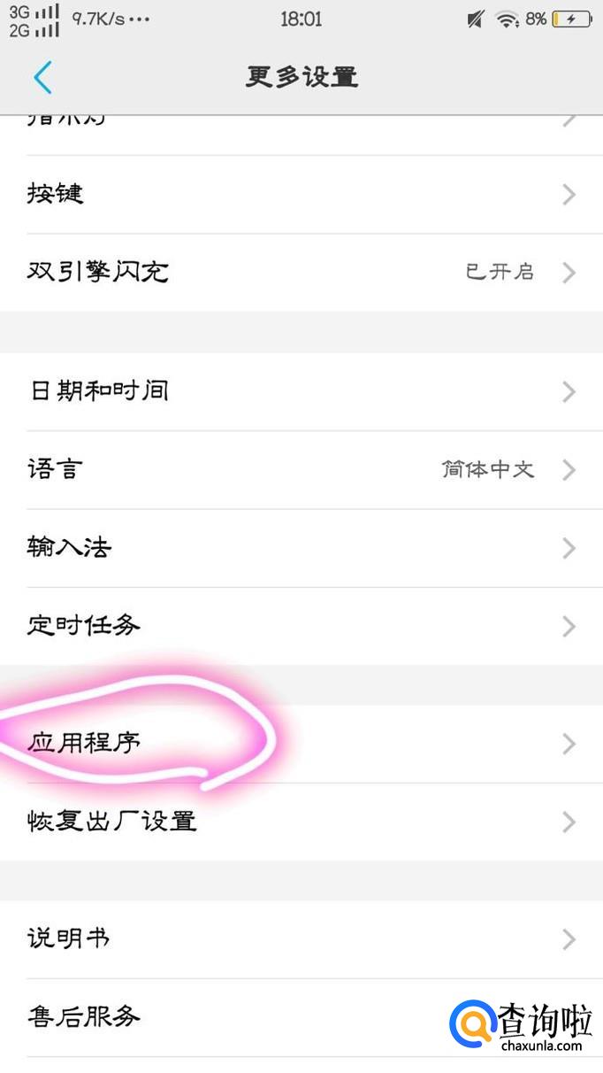 紧接着,大家在“更多设置”中找到“应用程序”并点击进入