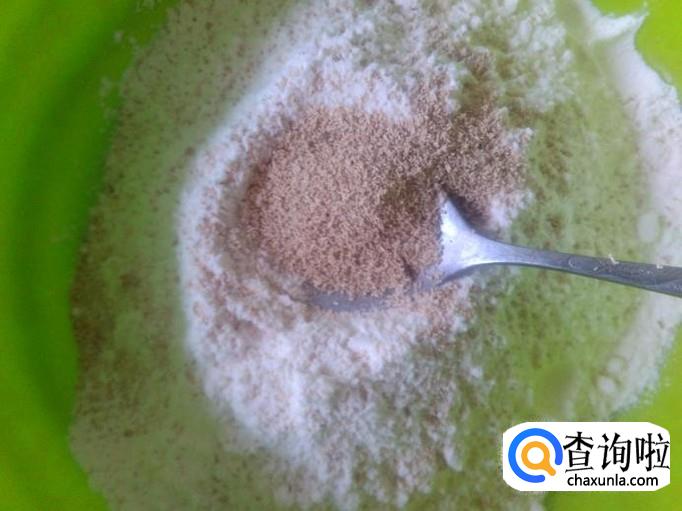 把酵母和甜酒酿放到面粉里混合一起。【酵母按说明下料】