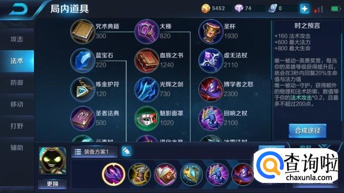 出装一:时之预言。为什么会出时之预言呢?因为时之预言是唯一被动英雄奖赏和唯一被动守护,太乙真人利用时之预言可以获得额外的物理和法术防御。