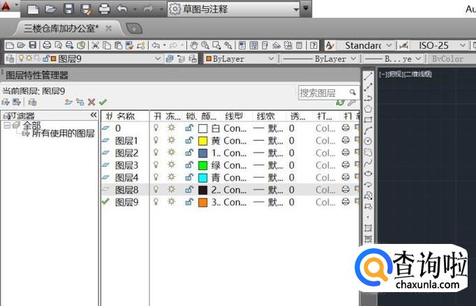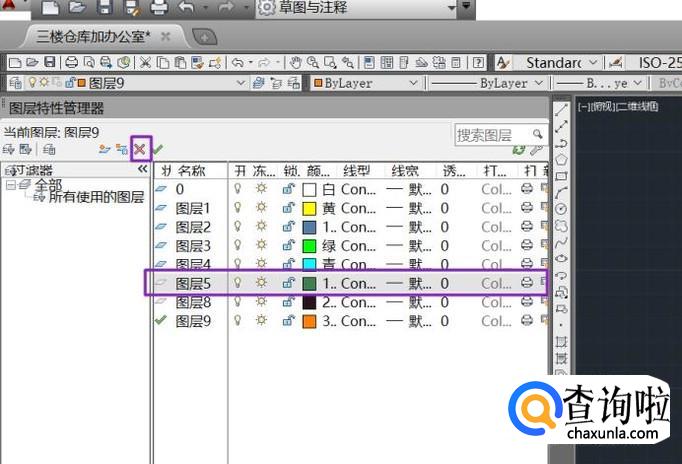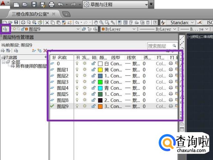 我们点击左上角的图层特性管理器,便会弹出所有图层;