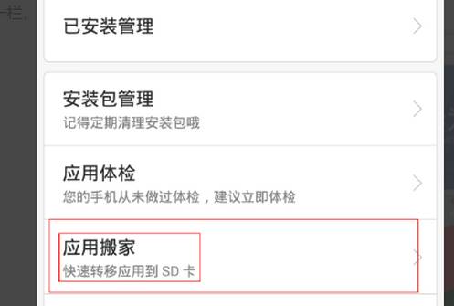 首先打开手机上的应用市场,在页面右上角可以看到管理选项;点击管理,在管理页面点击应用搬家;点击软件可以移动到手机内存或者是移动到SD卡,点击就可以进行软件搬家。