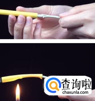 第二招、用热缩笔套在破损的地方,再用火给它加热。使它包裹好破损的地方。
