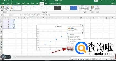 鼠标对着散点图中的其中一个点,点击鼠标右键,选择“添加趋势线R”,如图所示。