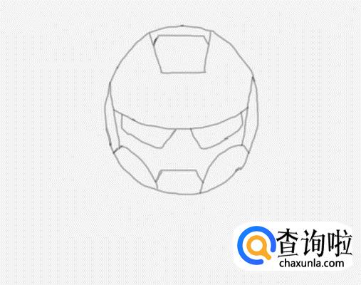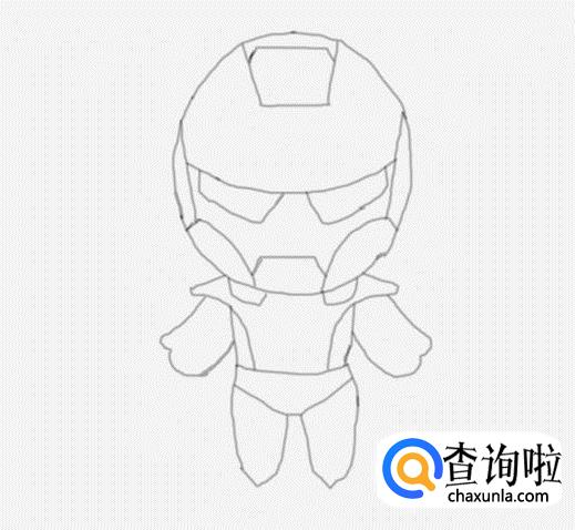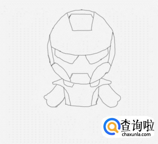 再在头部下面我们画出钢铁侠的左右肩膀及上部身体,如图所示: