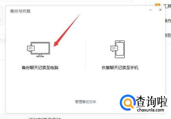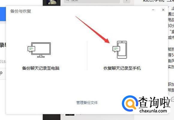 在弹出来的面板中选择点击“恢复聊天记录至手机”