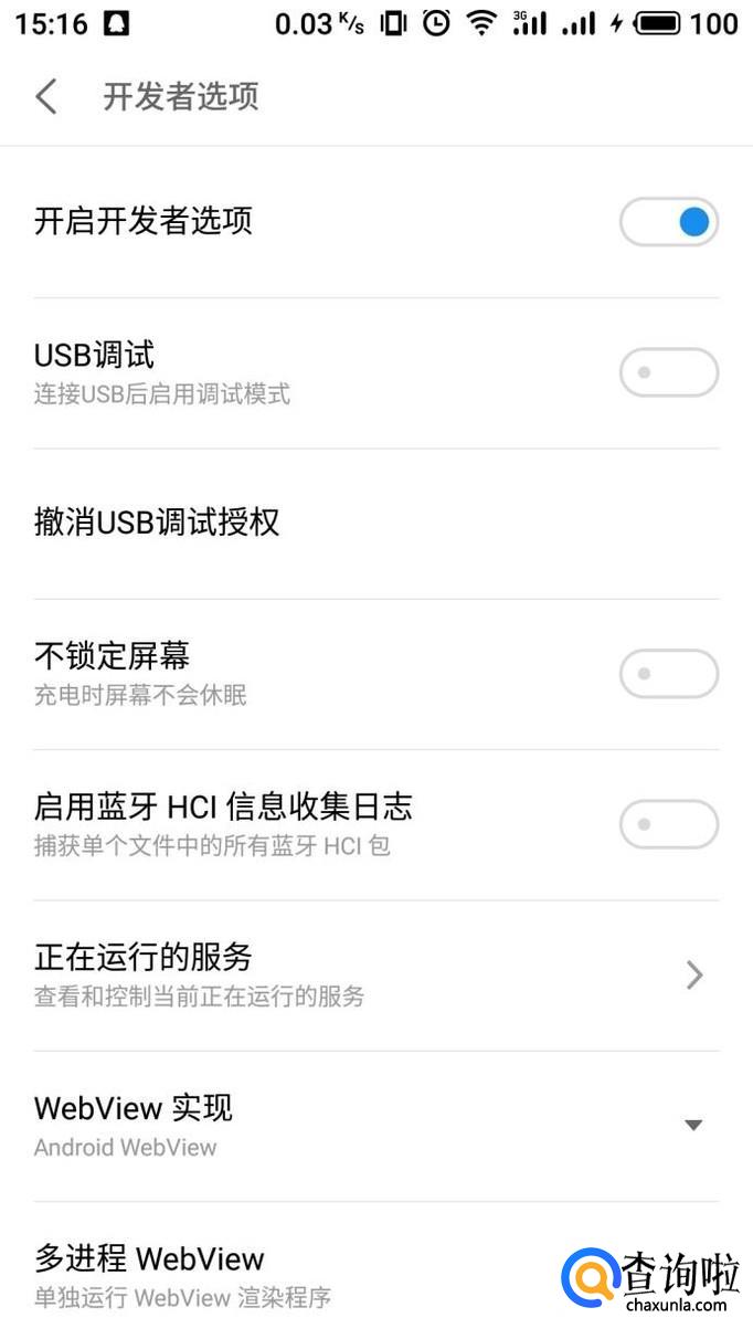进入开发者选项界面,将“开启开发者选项”开启之后即可对USB调试功能进行开启。