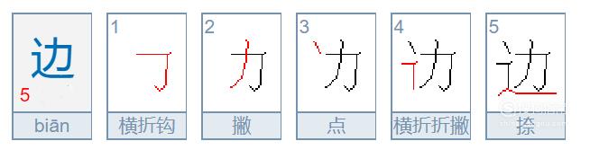 “边”的笔画数为5,分别是:横折钩、撇、点、横折折撇、捺。