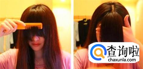 留出来准备做空气刘海的头发自己看一下长短度,根据你自己的脸型,决定刘海的长短度,个人建议,如果是方脸或者大饼子脸的女生,空气刘海的长度不要露出眉毛。