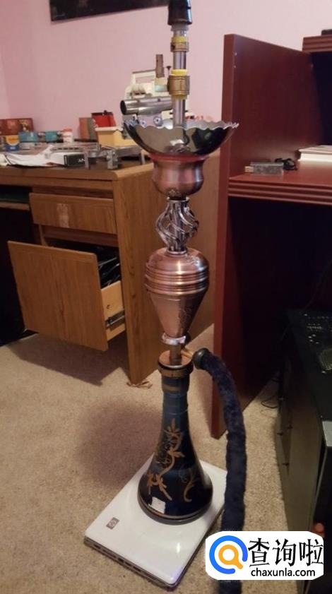 利用旧配件作成的水烟斗。