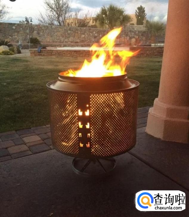 旧洗衣机改装的户外烤架。