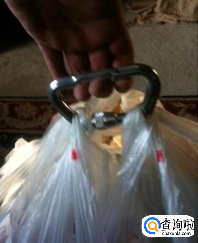 把这个拿来当提环用,可以同时提起好几个袋子。