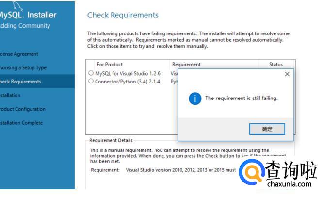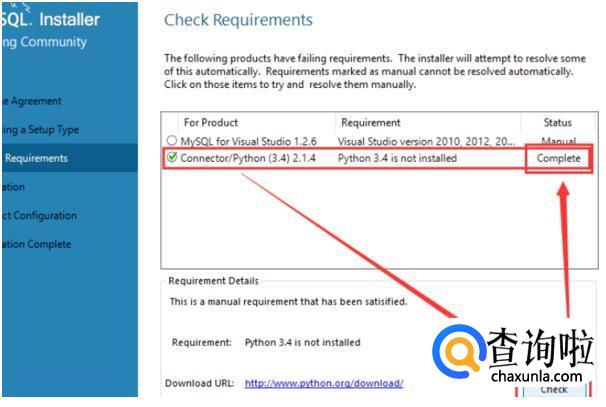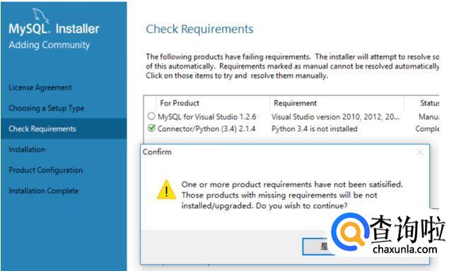 如果没有达到要求,需要手动安装额外的软件,如果某个产品你不会用到,不安装额外软件的话也可以继续mysql。
