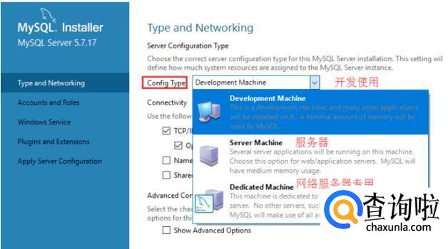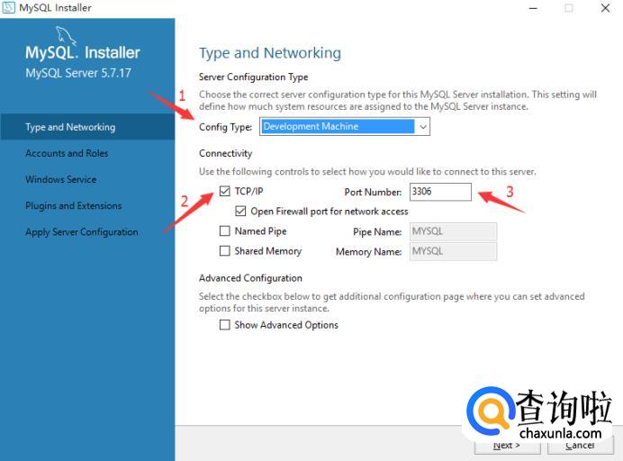默认直接点next可以了。PS:mysql的tcp默认端口都是3306,如果仅仅是本地软件使用,不需要用到网络来连接mysql的话,也是可以不选择的。named pipe是局域网用的协议,如果需要可以勾上。