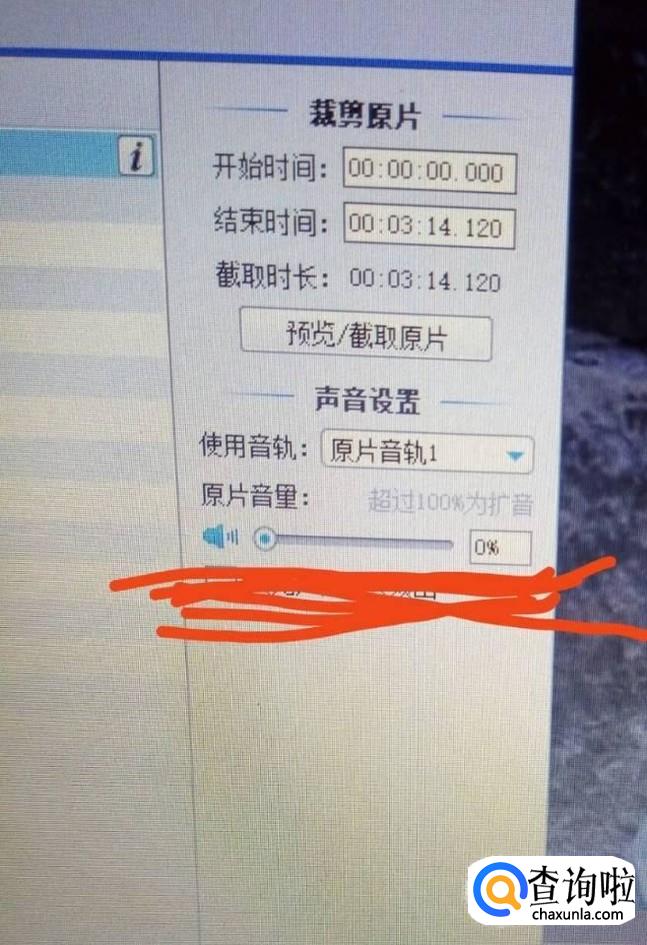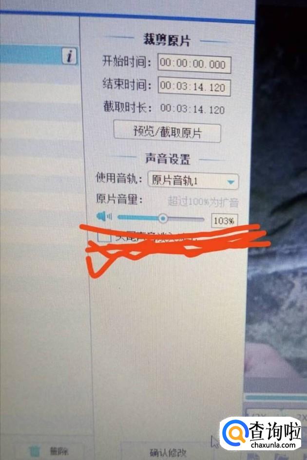 现在说第二种方法。先点击下图一中的原片音量,将其调到百分之零。最后也要点击下方的“确认修改”哦。 这样也可以的到你想要的无声视频了