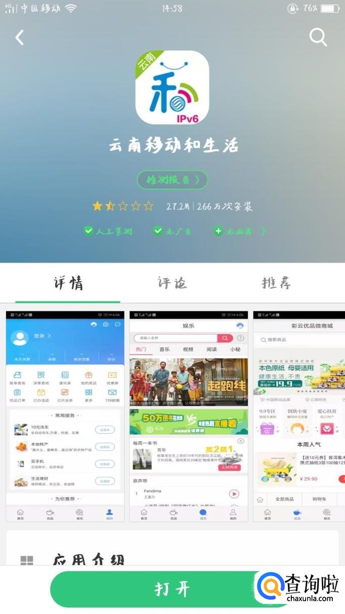 第二种方法是在手机app上申请即可,首先下载手机电话卡归属地的“移动和生活”,以云南移动和生活为例子。