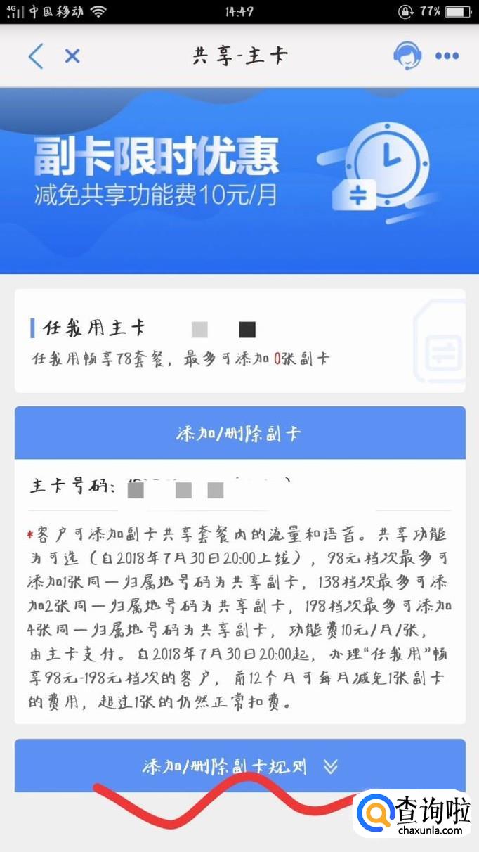 了解规则后可直接点击“添加/删除副卡”即可办理副卡。