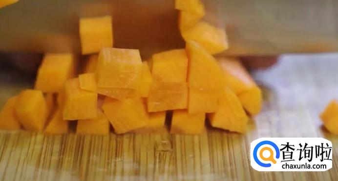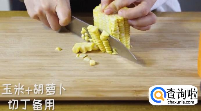 将玉米和胡萝卜切丁备用。