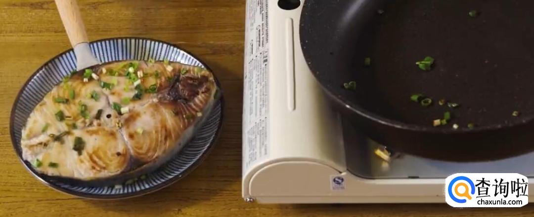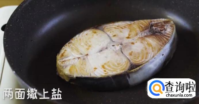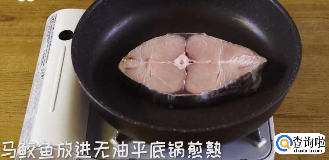 将马鲛鱼放进无油平底锅煎熟。