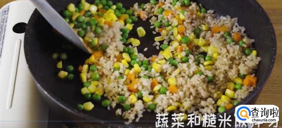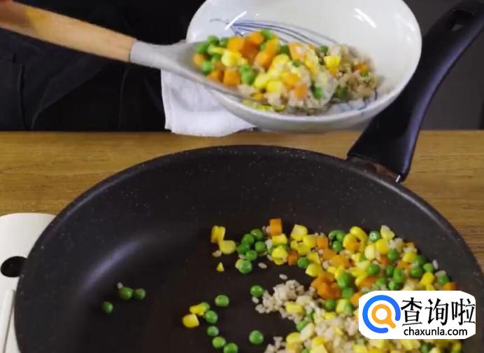另起锅,将蔬菜和糙米饭拌匀后盛出。