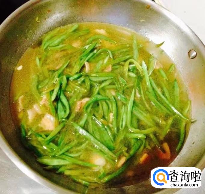 热锅加入多一点的花生油把五花肉炒出香味,放入葱花、蒜片爆香,料酒、生抽烹锅,放入芸豆丝、胡萝卜丝、木耳丝翻炒均匀至变软,加入适量的清水盖好锅盖煮沸