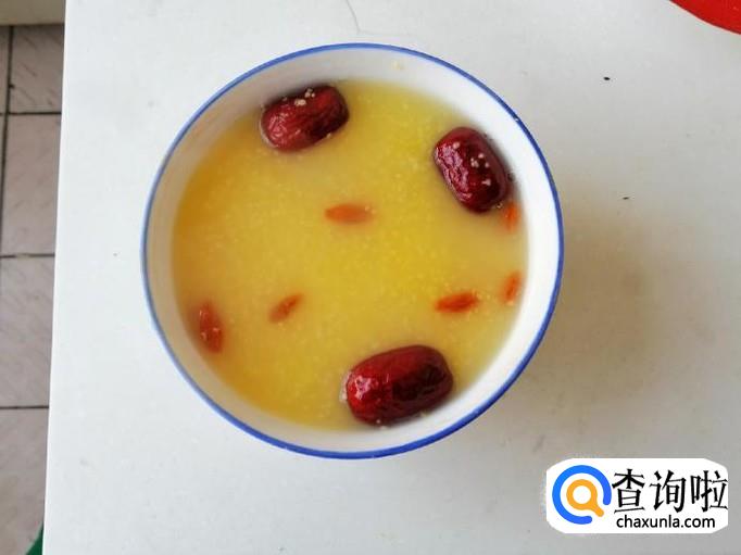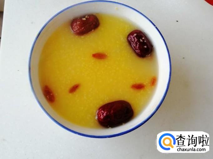 大约二十分钟过去了,让我们看看煮粥的水明显少了,玉米渣也比之前软糯了,百合也煮熟了,红枣枸杞也都煮好了,这时就可以关火,如图百合红枣枸杞玉米粥就煮好了,把粥盛入碗中就可以上桌喝了。