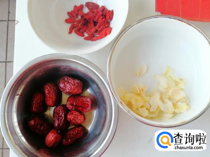 取适量干枸杞用清水洗净待用。枸杞我选用的是宁夏枸杞,品质挺不错的,不要选择颜色太红和粘手的枸杞,那种都是染色或泡过的,选择如图的枸杞就可以。