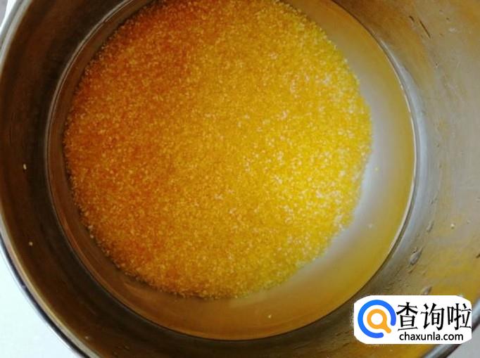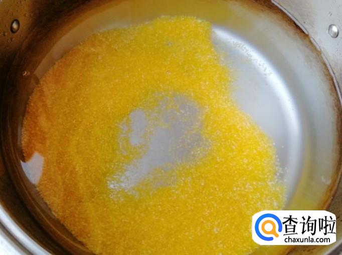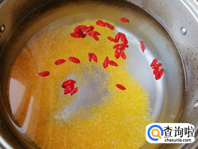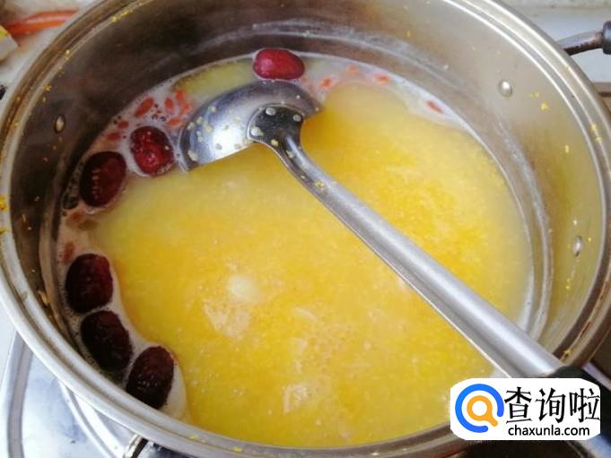 煮锅放适量水,放入洗好的玉米渣,水量和玉米渣的比例是因人而异的,喜欢喝稠点的粥,就可以少放水,喜欢喝稀粥就多放些水,多做几次就有经验了。