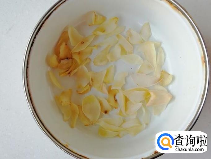 取适量百合用清水冲洗,然后用温水泡一会,最后再冲洗厚滤水待用。选择百合不要选特别白的,如图这种看上去微黄的才是没经过处理的百合。