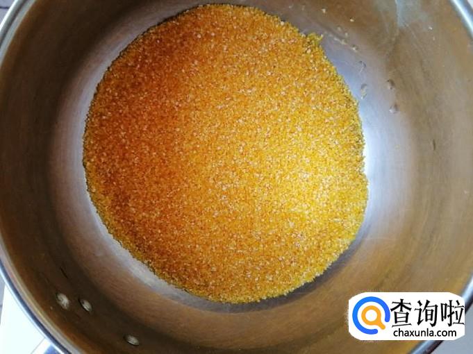 取适量玉米渣,用清水洗净待用。我这里选用的玉米渣是最细的,煮粥的话很容易煮熟,要用粗玉米渣的话必须早泡会,因为粗玉米渣不好熟,必须熬制时间长。