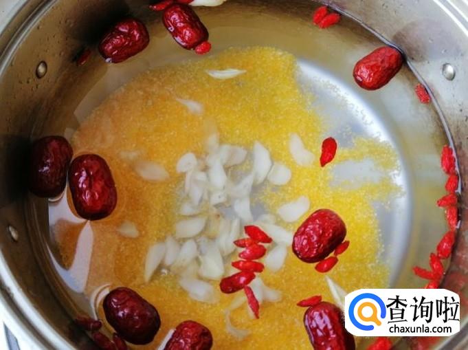 玉米渣一小杯,红枣适量,枸杞适量,百合适量